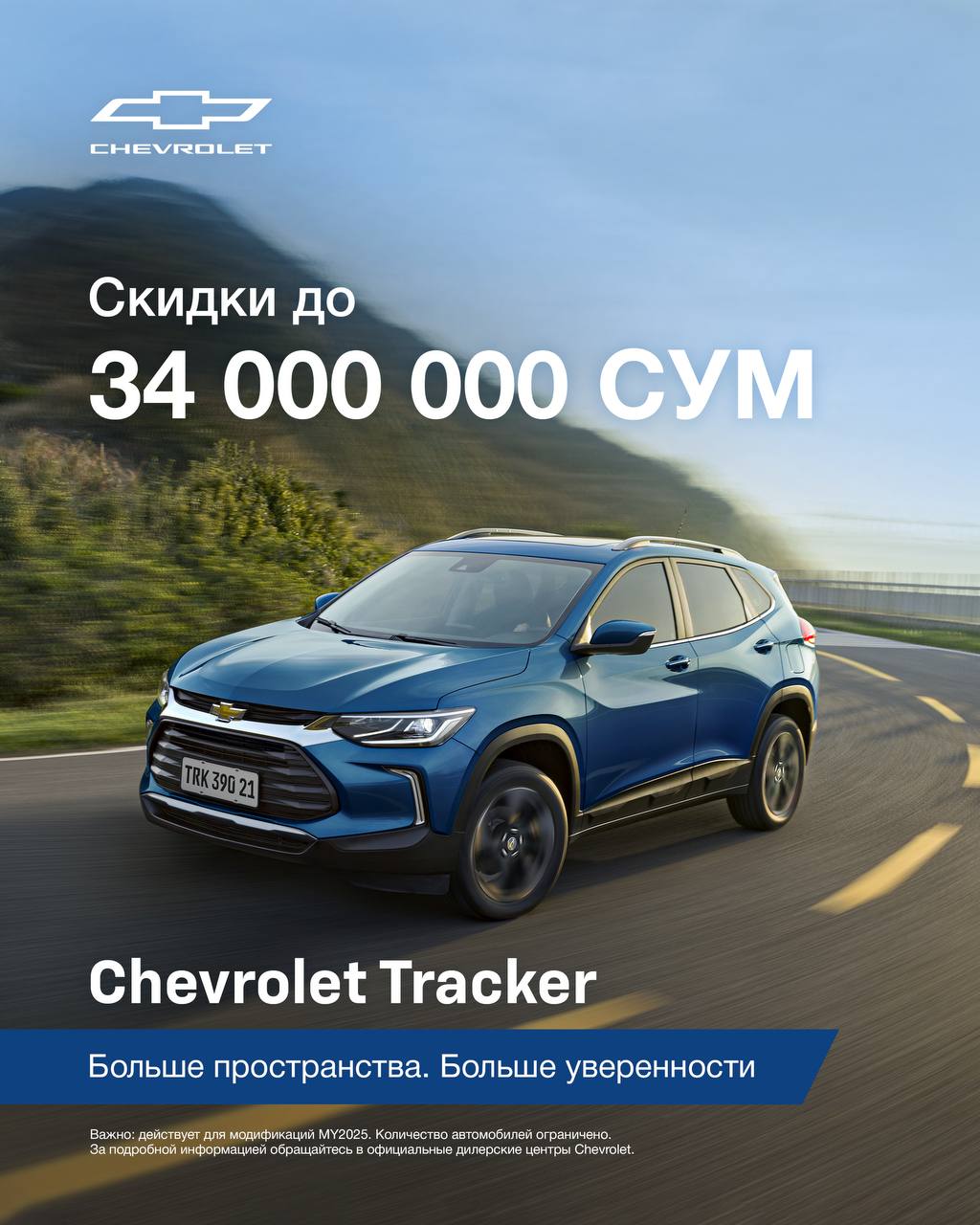 • Chevrolet Tracker — with a discount of up to 34,000,000 soums.
