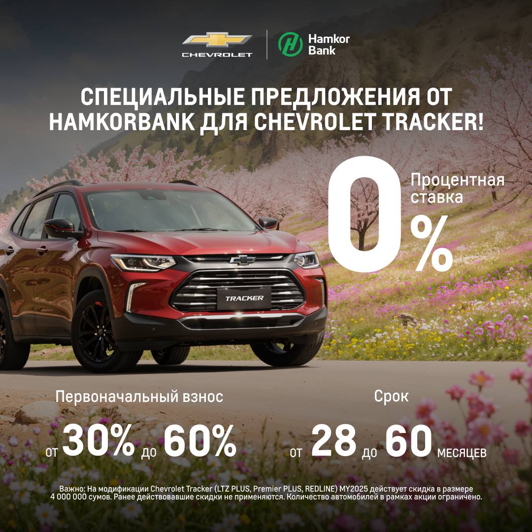 Важно: На модификации Chevrolet Tracker (LTZ PLUS, Premier PLUS, REDLINE) MY2025 действует скидка в размере 4 000 000 сумов. Ранее действовавшие скидки не применяются. Количество автомобилей в рамках акции ограничено.