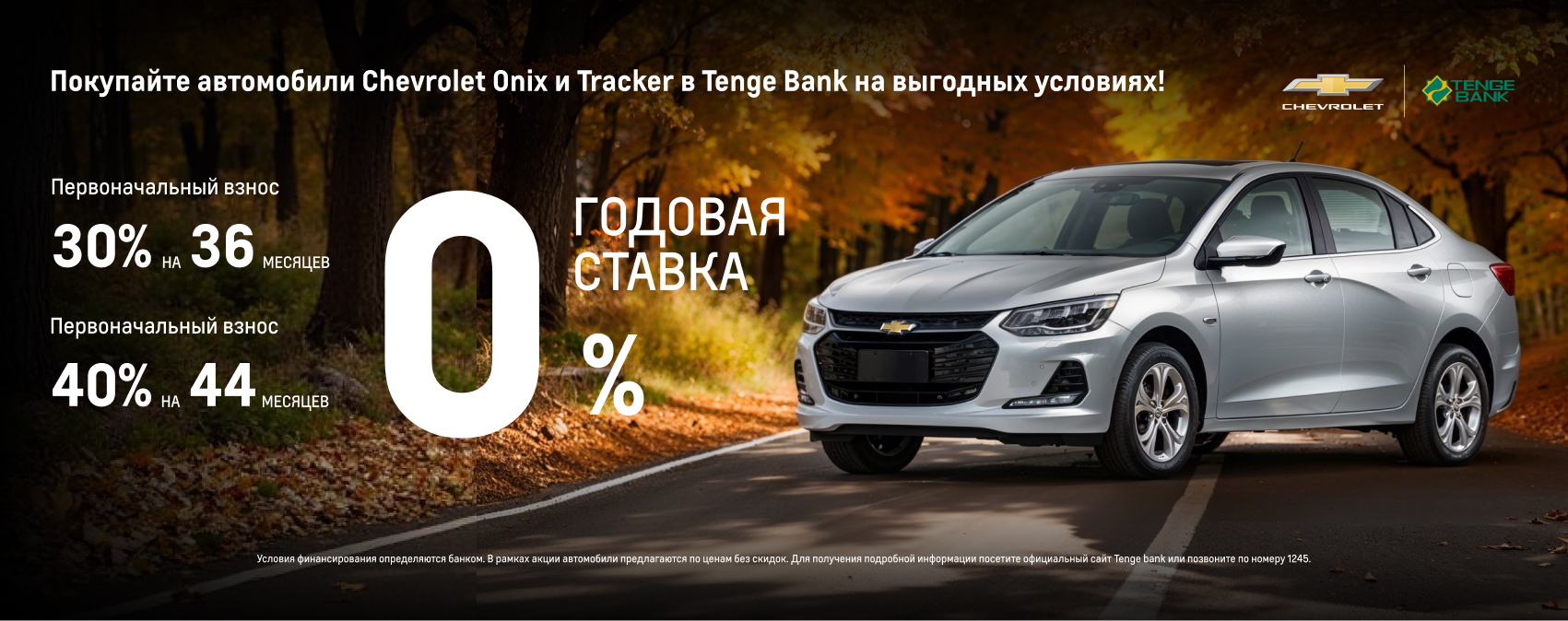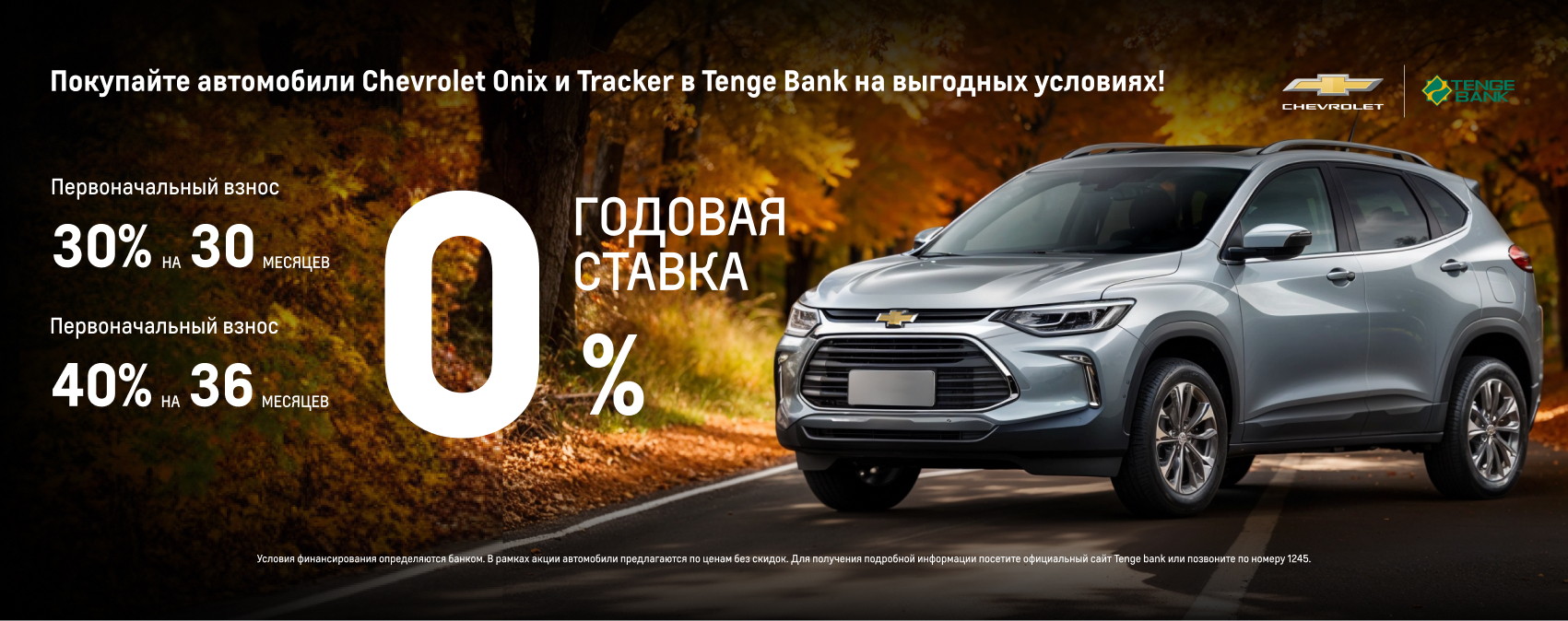 Tenge Bank предоставляет возможность приобрести автомобили Chevrolet Onix и Tracker на привлекательных условиях.