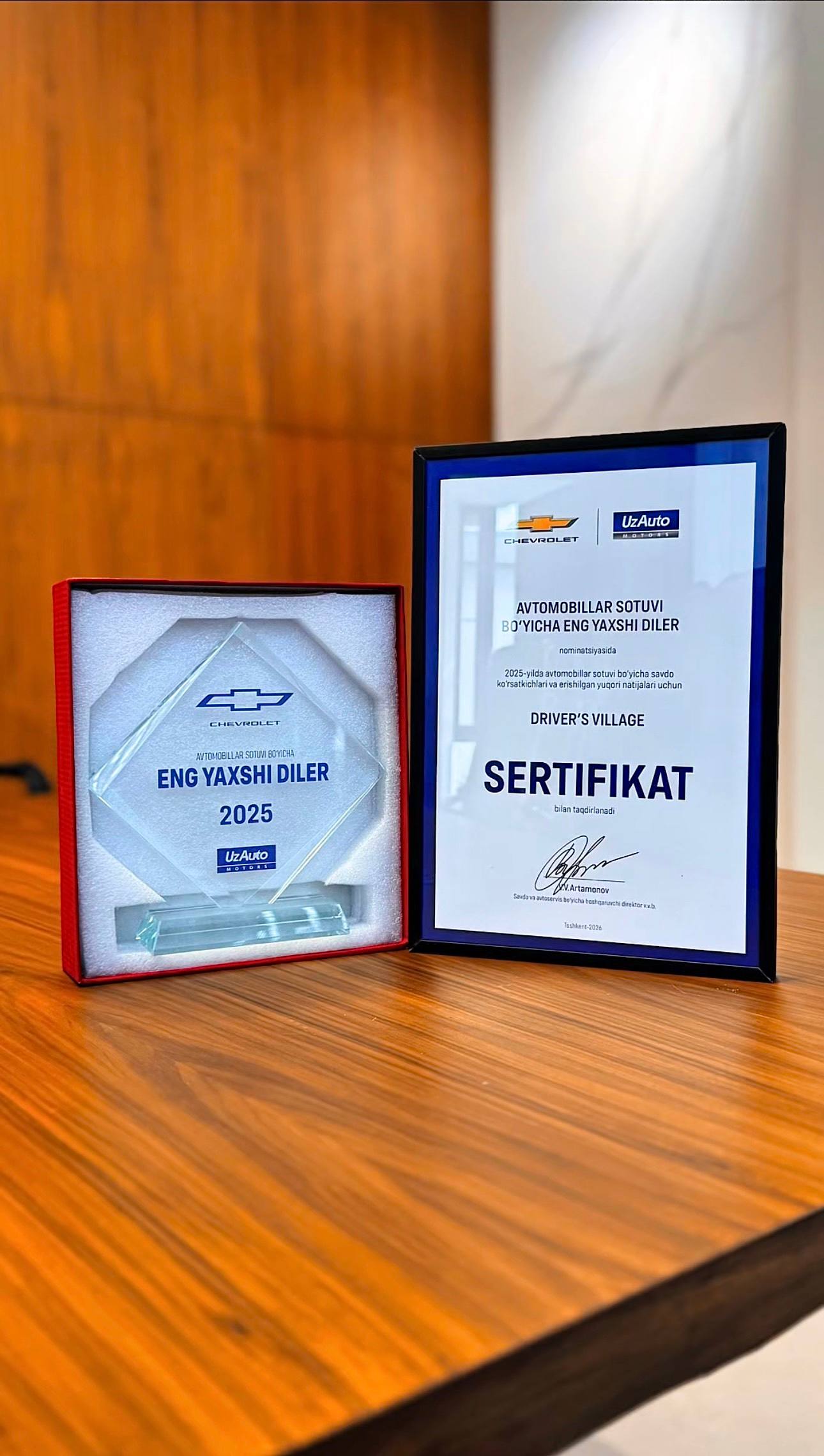 Мы очень рады получить специальный сертификат от АО «УзАвтоМоторы» в связи с этим достижением.