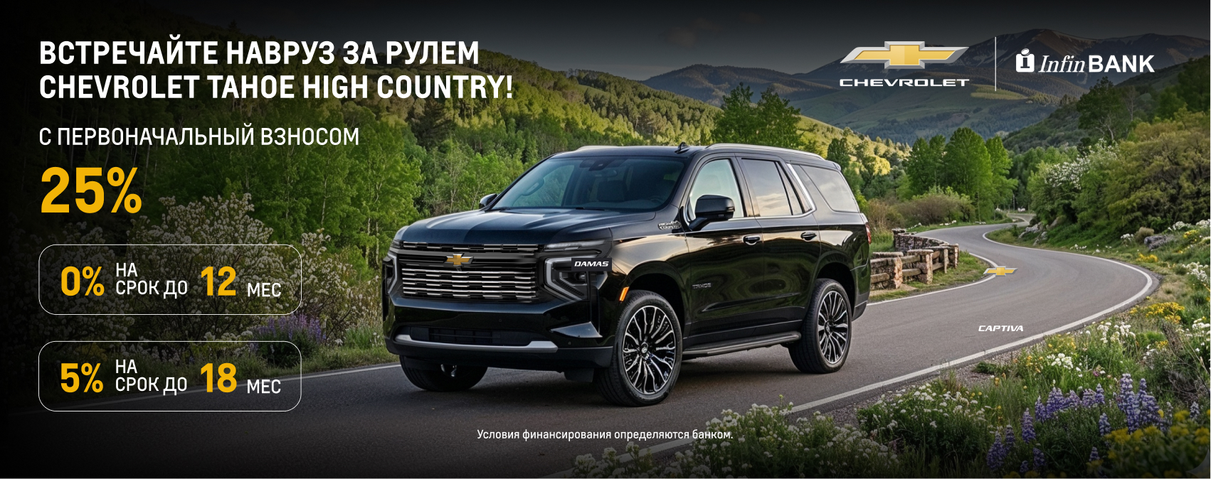 Данное предложение позволит клиентам приобрести автомобиль Chevrolet Tahoe High Country на условиях, соответствующих их возможностям, и встретить весну с комфортом нового уровня.