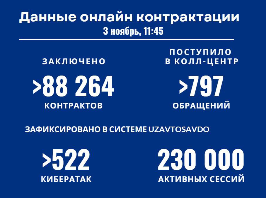 С момента открытия контрактации по состоянию на 11:45 через платформу uzavtosavdo.uz успешно заключено более 88 264 договоров.