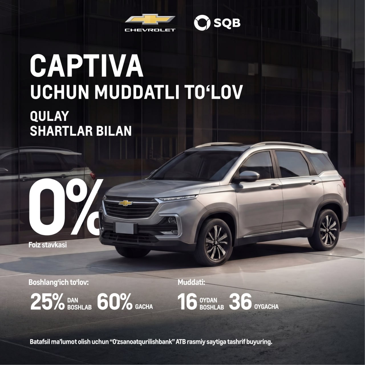 UzAuto Motors mijozlari uchun avtomobil xaridini yanada manfaatli qilish maqsadida 0% stavka bilan uzoq muddatli to‘lov imkoniyatini taqdim etadi.